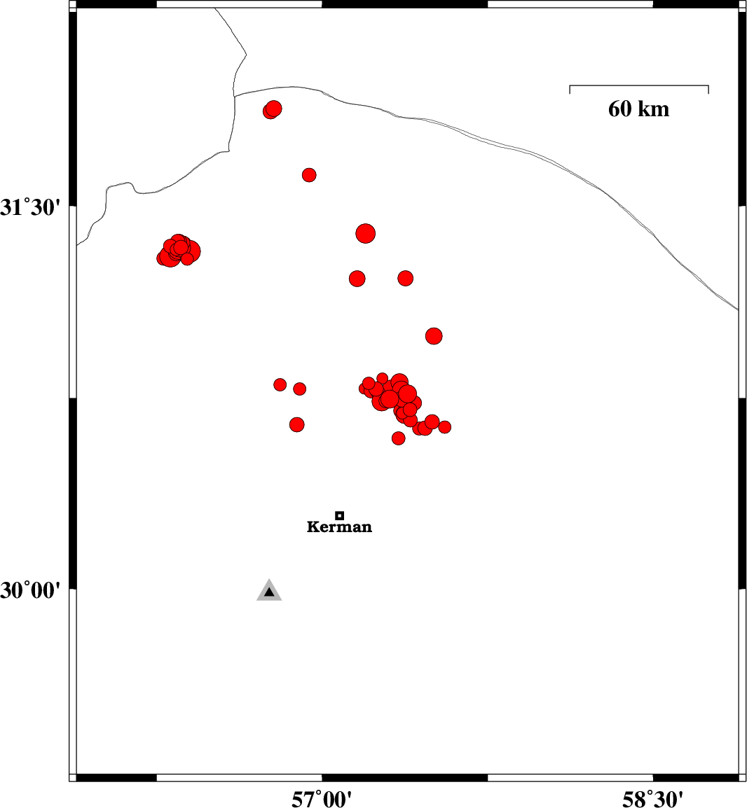 | 2018/04/04 | 22:12:39.1 | 02:42:39.1 | 30.7 | 57.357 | 14 | ML3 | Kerman Province, 53 km North-East of Kerman | ||