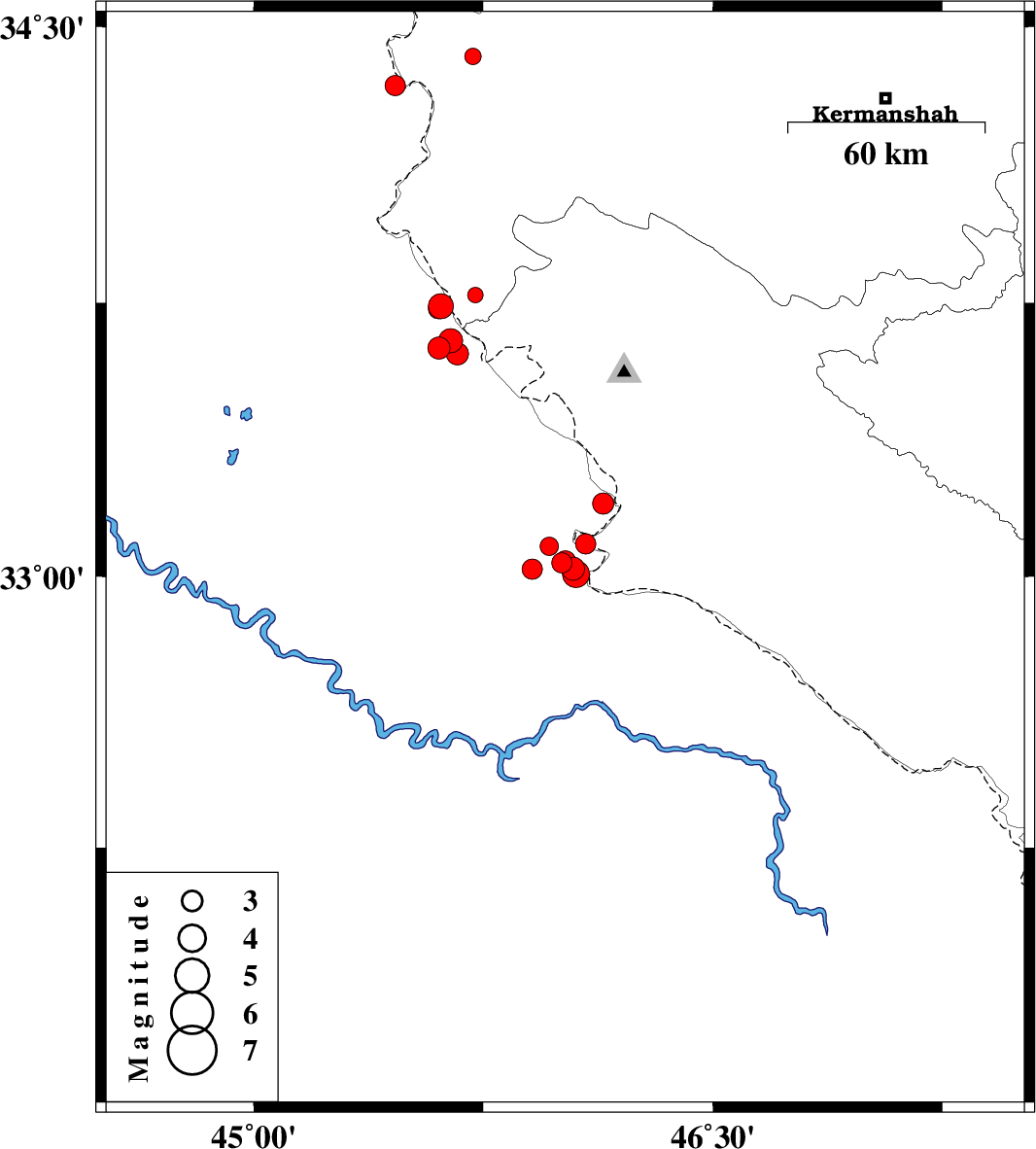 | 2018/04/27 | 03:04:31.4 | 07:34:31.4 | 34.34 | 45.462 | 14 | ML3 | Iraq, 23 km South-West of Qasr-E-Shirin | ||
