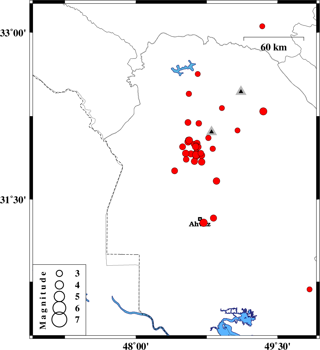 | 2018/03/31 | 07:26:45.3 | 11:56:45.3 | 31.92 | 48.641 | 16 | ML3 | Khoozestan Province, 24 km South-West of Shushtar |