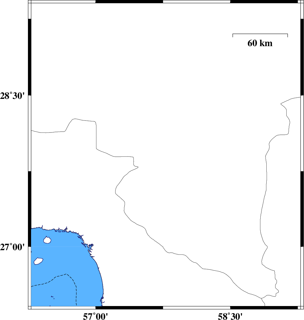 | 2018/04/24 | 14:53:19.3 | 19:23:19.3 | 28.05 | 57.497 | 14 | ML3.3 | Kerman Province, 22 km -West of Kahnuj |