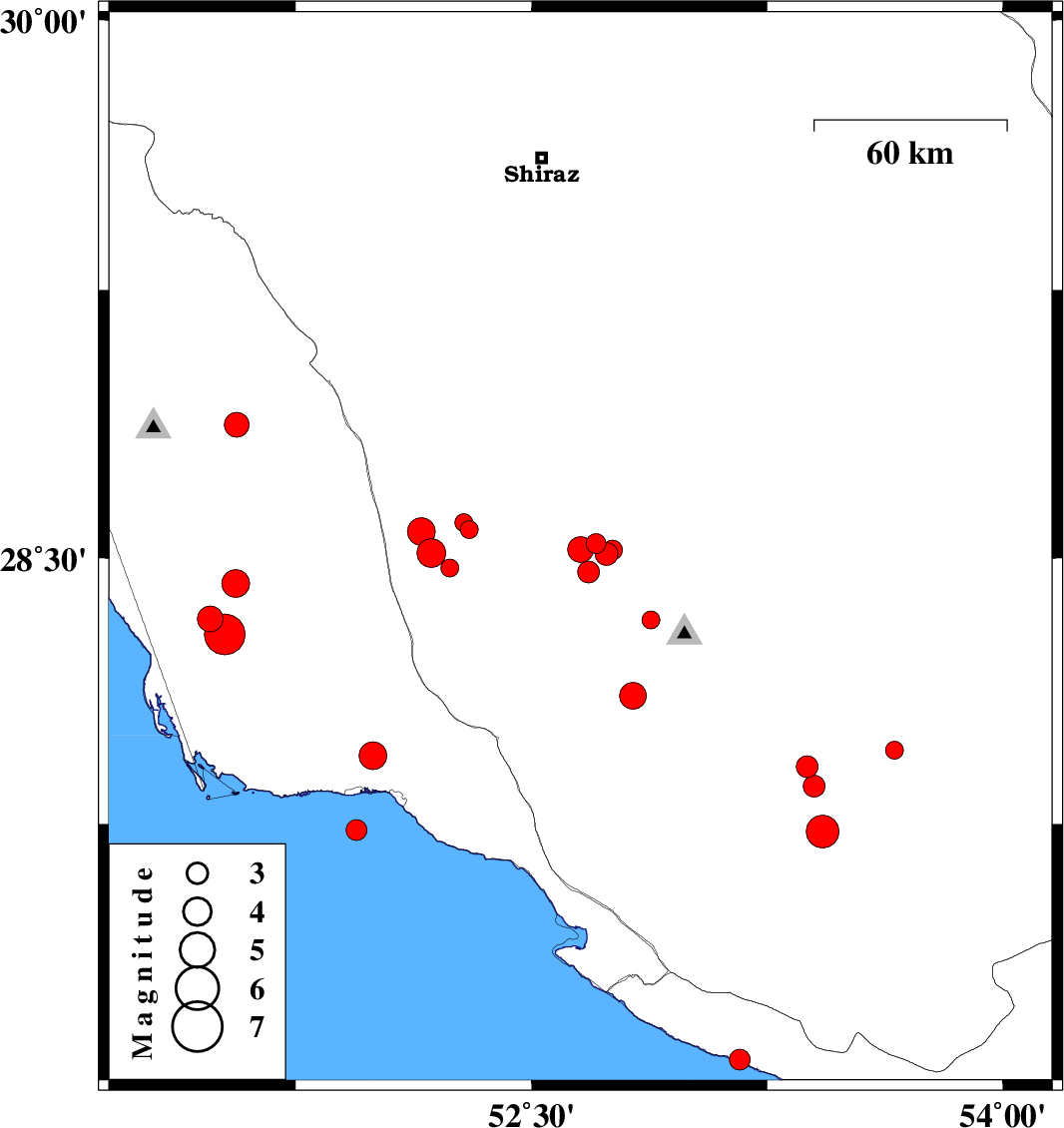 | 2018/04/19 | 06:34:45.3 | 11:04:45.3 | 28.285 | 51.524 | 14 | Mw5.8 | Bushehr Province, 43 km South-East of Khormog | ||