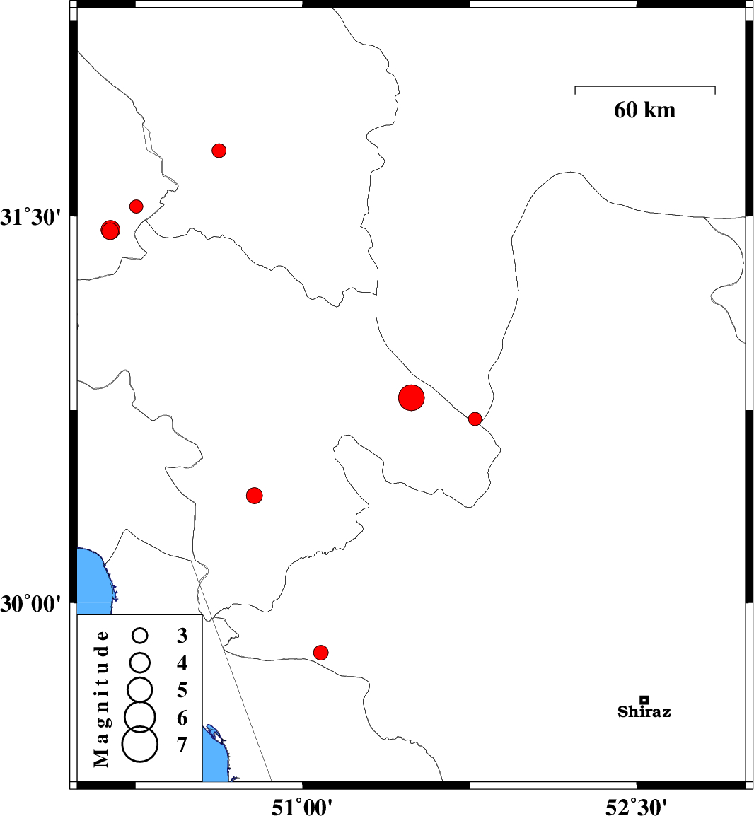 | 2018/04/04 | 12:26:49.9 | 16:56:49.9 | 29.805 | 51.082 | 18 | ML2.9 | Fars Province, 62 km North-West of Borazjan |