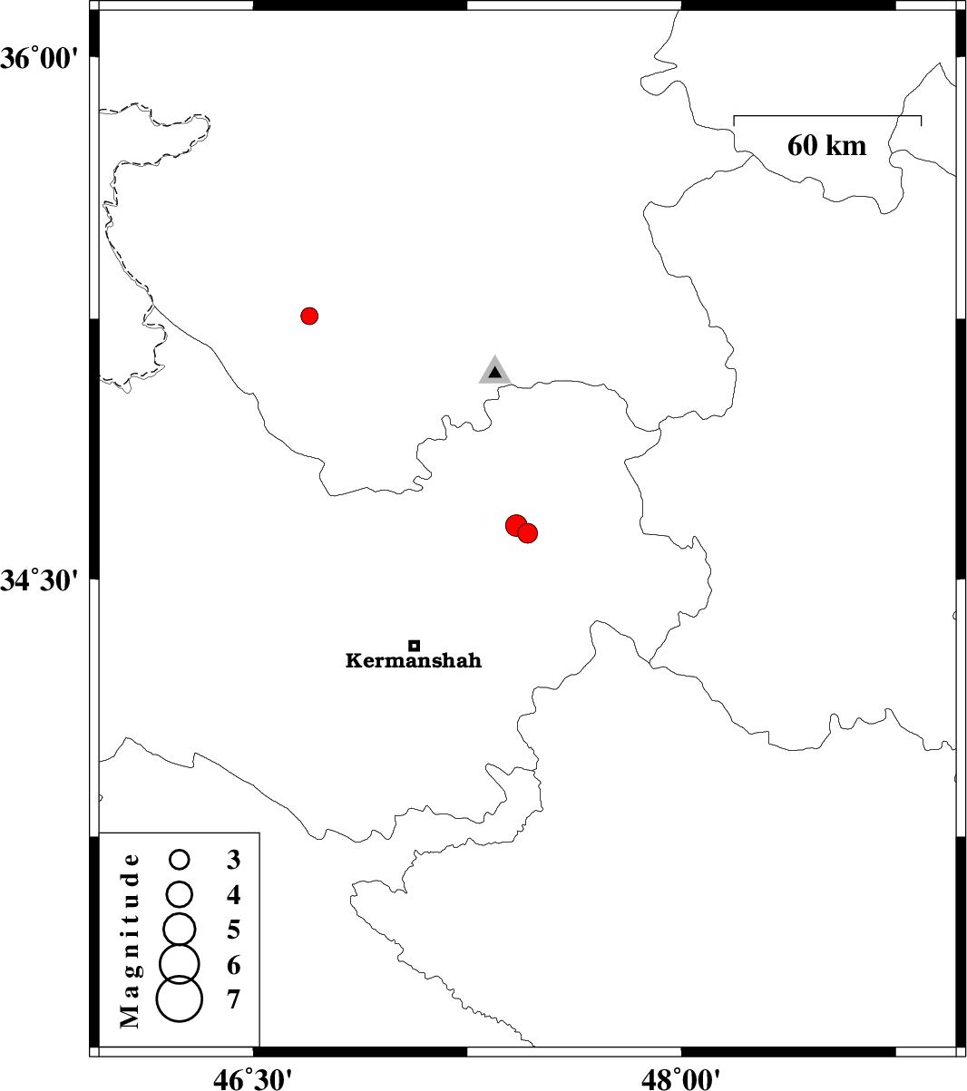 | 2018/05/04 | 11:46:24.9 | 16:16:24.9 | 34.655 | 47.422 | 6 | ML3.4 | Kermanshah Province, 21 km South-West of Sonqor | ||