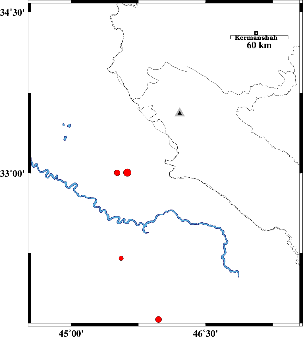 | 2018/04/28 | 01:13:21.0 | 05:43:21.0 | 33.006 | 46.053 | 14 | ML4 | Iraq, 16 km South-West of Mehran |