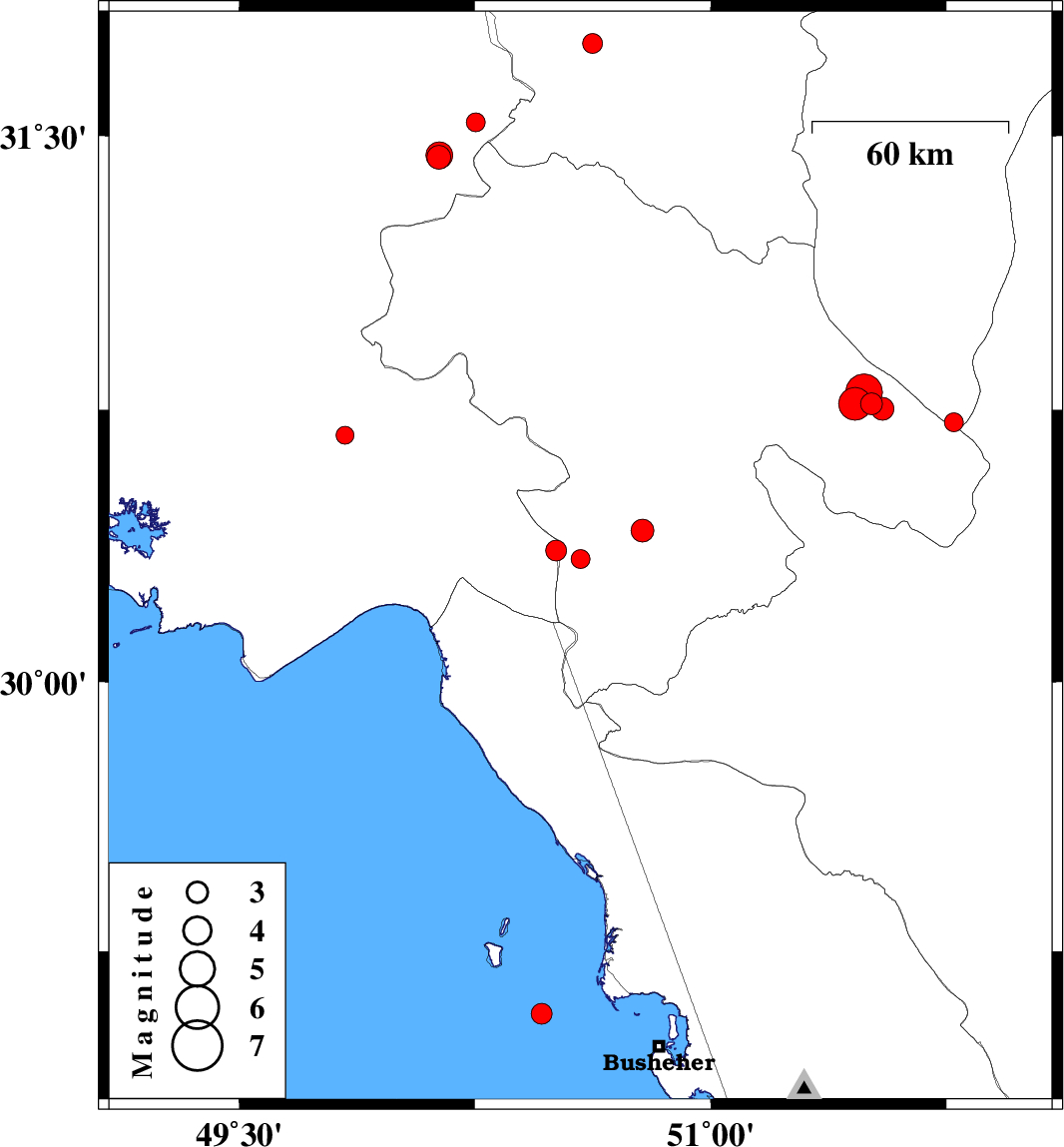 | 2018/05/05 | 23:16:51.1 | 03:46:51.1 | 29.076 | 50.462 | 15 | ML3 | Persian Gulf, 38 km -West of Busheher | ||