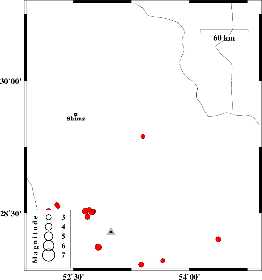 | 2018/04/16 | 15:32:17.7 | 20:02:17.7 | 28.112 | 52.823 | 16 | ML3.8 | Fars Province, 44 km South-West of Qir va Karzin | ||