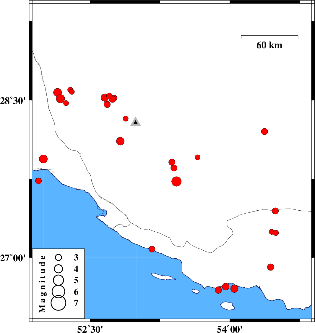 | 2018/04/01 | 01:32:55.0 | 06:02:55.0 | 28.325 | 52.88 | 6 | ML2.6 | Fars Province, 22 km South-West of Qir va Karzin |