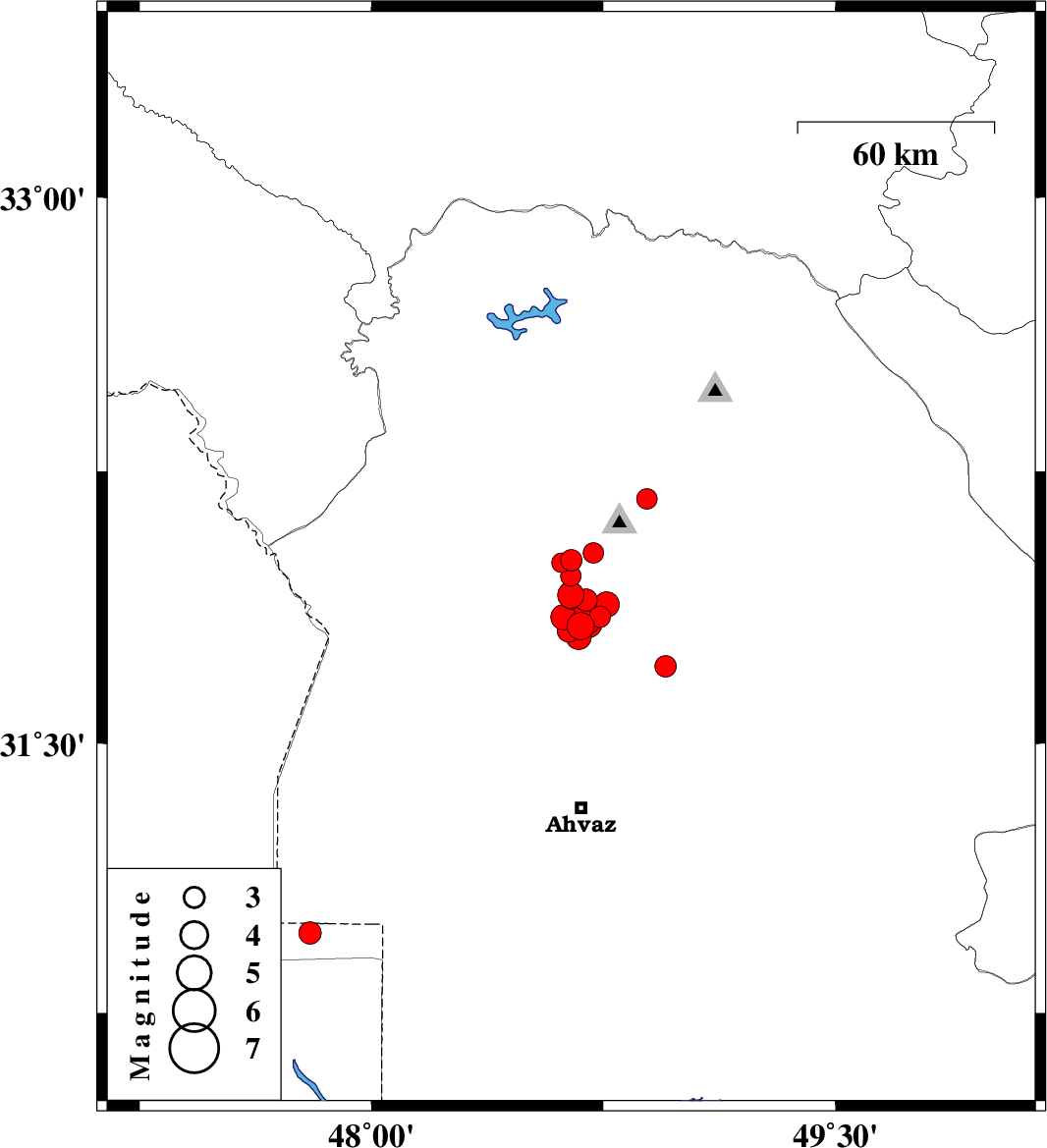 | 2018/03/28 | 11:59:42.9 | 16:29:42.9 | 31.795 | 48.67 | 15 | ML3.7 | Khoozestan Province, 32 km South-West of Shushtar | ||
