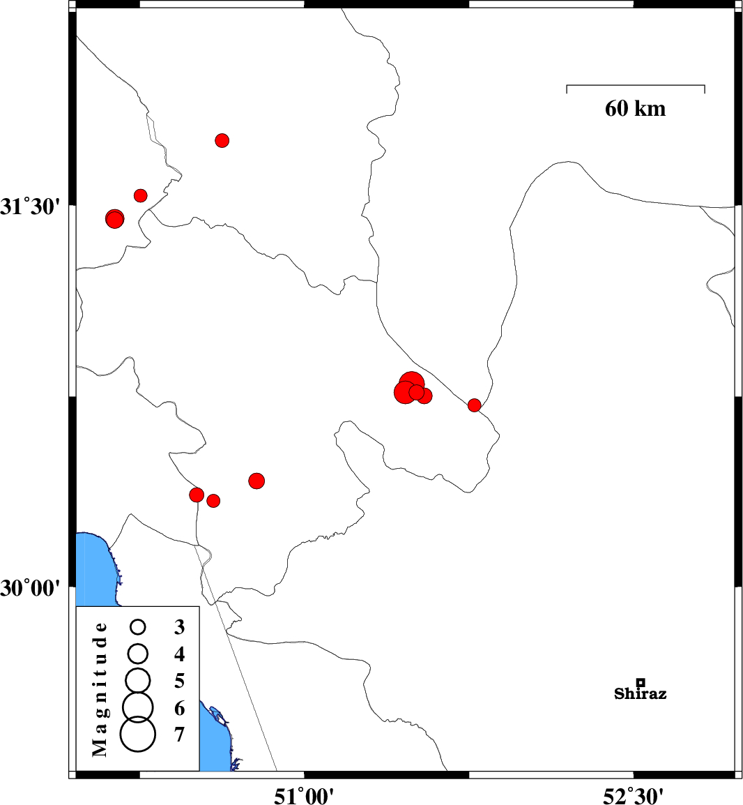 | 2018/05/02 | 04:08:14.0 | 08:38:14.0 | 30.798 | 51.488 | 15 | ML5.2 | Kohkiluieh va boyerahmad Province, 8 km of Sisakht | ||
