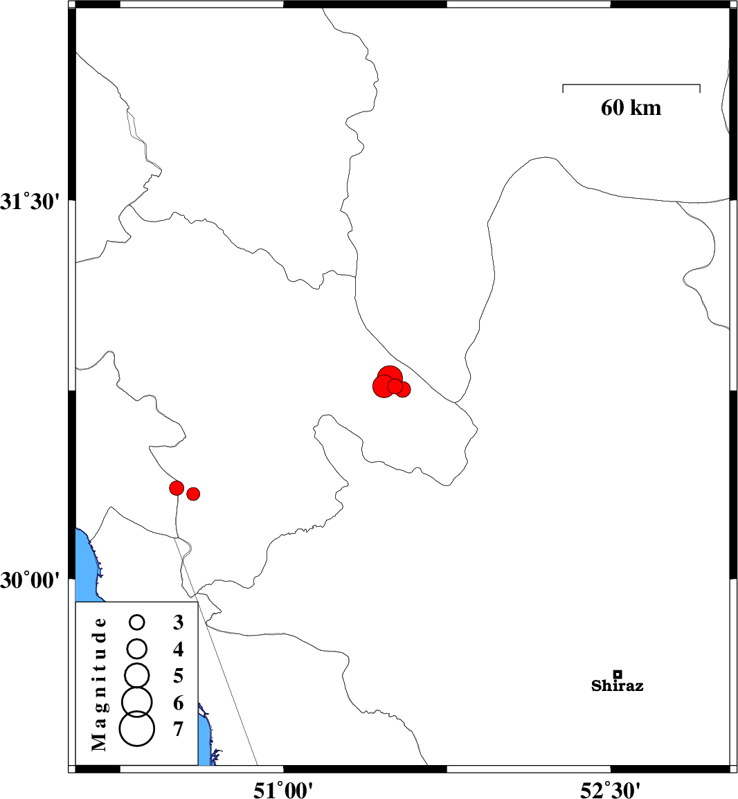 | 2018/05/02 | 04:08:14.0 | 08:38:14.0 | 30.798 | 51.488 | 15 | ML5.2 | Kohkiluieh va boyerahmad Province, 8 km of Sisakht |
