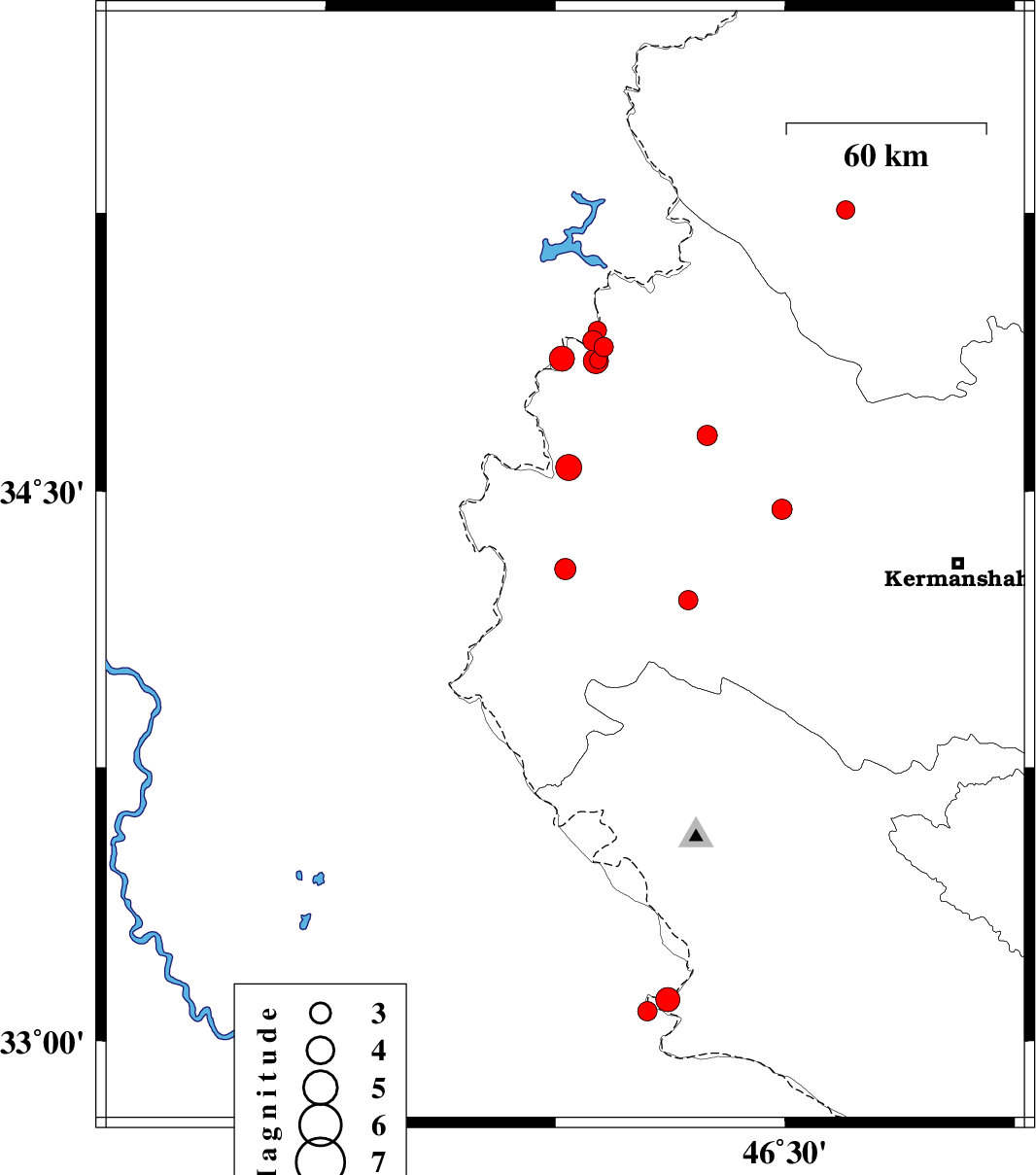 | 2018/05/09 | 16:34:05.2 | 21:04:05.2 | 34.907 | 45.872 | 15 | ML3 | Kermanshah Province, 16 km North of Tazehabad | ||
