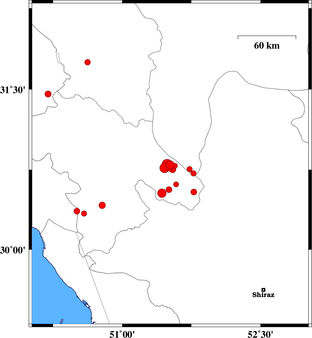 | 2018/05/10 | 13:42:11.1 | 18:12:11.1 | 30.542 | 51.776 | 14 | ML2.9 | Kohkiluieh va boyerahmad Province, 24 km South-East of Yasuj | ||