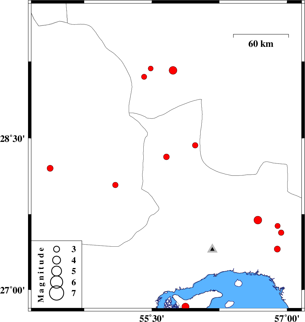 | 2018/05/05 | 18:13:56.1 | 22:43:56.1 | 26.83 | 55.873 | 19 | ML3.7 | Persian Gulf, 41 km South-West of Qeshm | ||