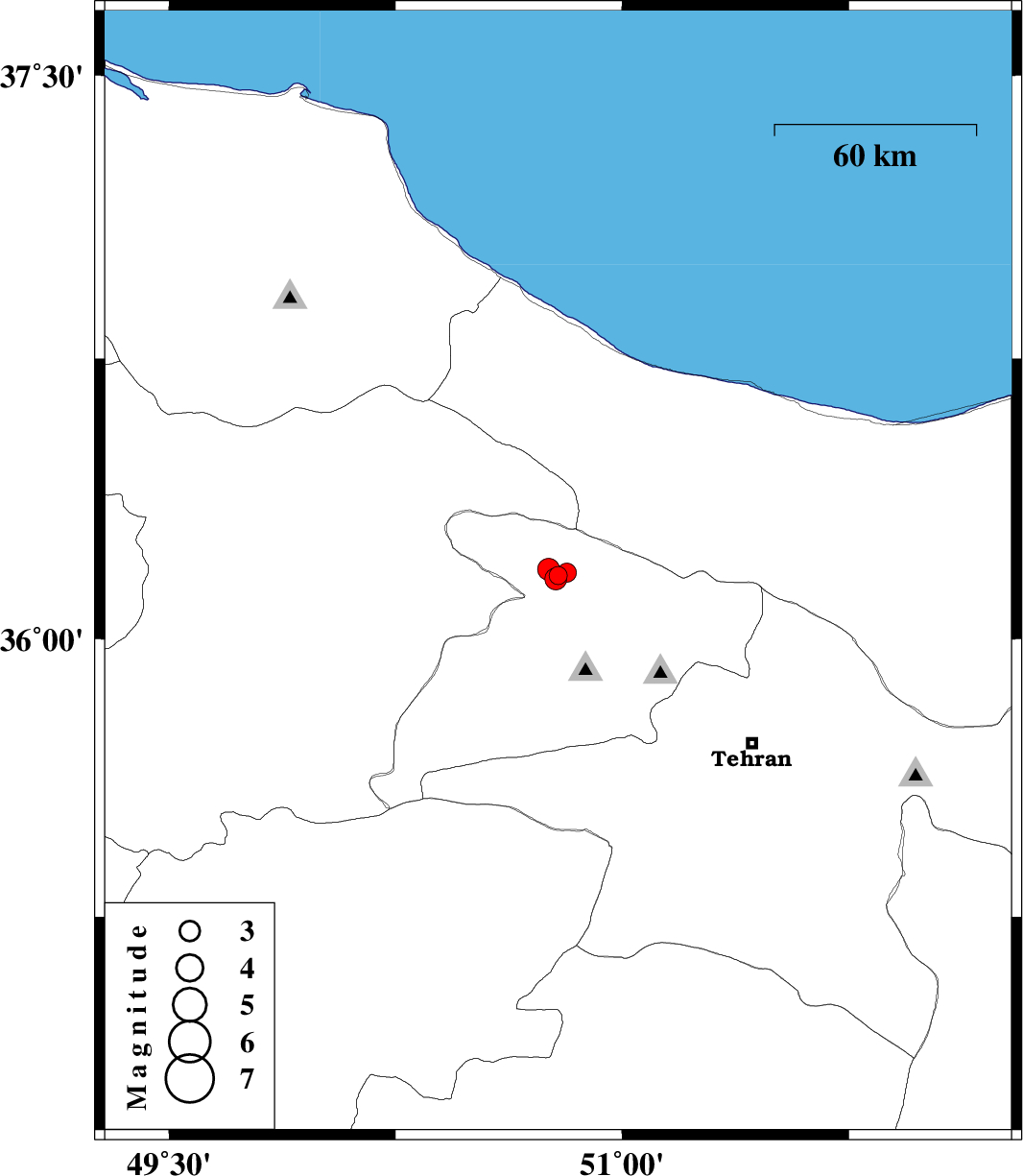 | 2018/05/12 | 23:07:18.7 | 03:37:18.7 | 36.187 | 50.757 | 15 | ML3.3 | Tehran Province, 27 km North of Hashtgerd |