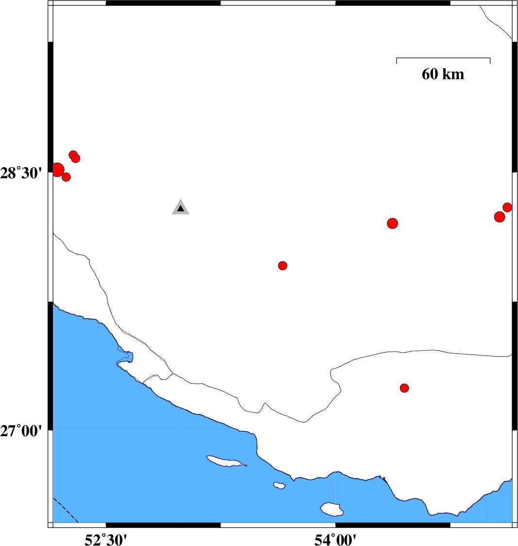 | 2018/04/06 | 17:51:19.8 | 22:21:19.8 | 28.514 | 52.181 | 17 | ML4.1 | Fars Province, 41 km South of Farashband |