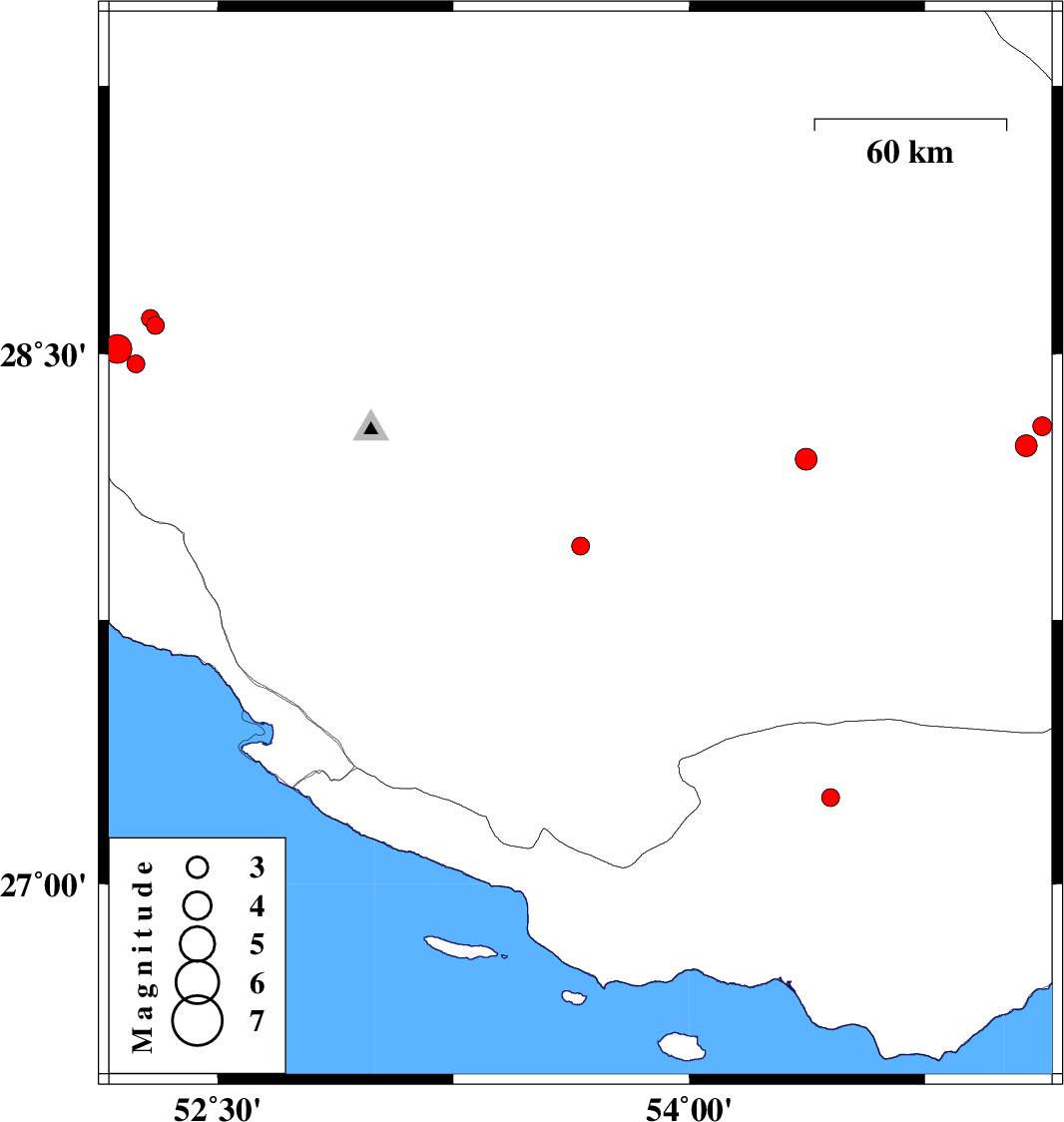| 2018/04/06 | 19:54:20.7 | 00:24:20.7 | 28.599 | 52.285 | 18 | ML2.5 | Fars Province, 36 km South-East of Farashband | ||