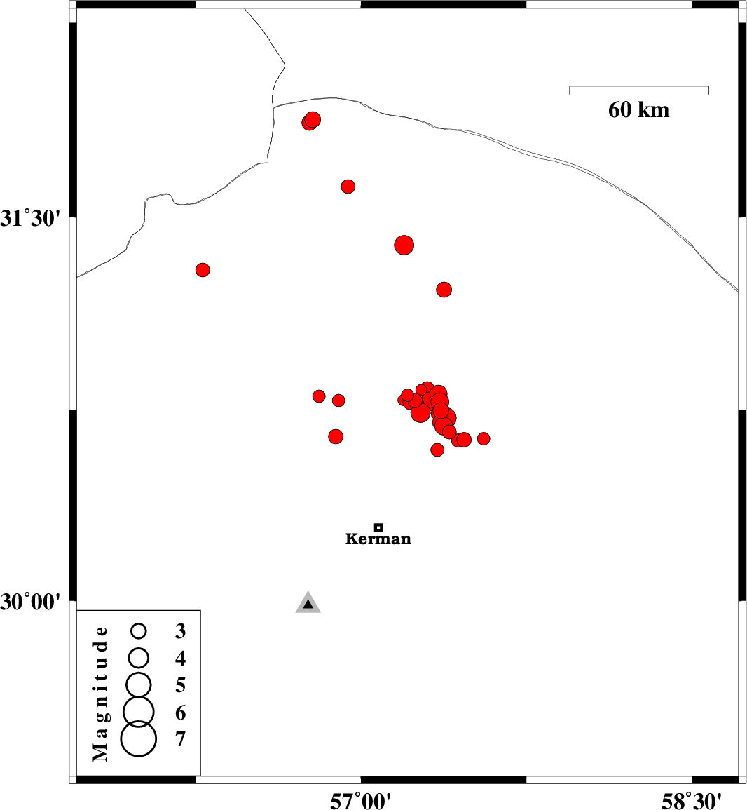 | 2018/04/04 | 22:12:39.1 | 02:42:39.1 | 30.7 | 57.357 | 14 | ML3 | Kerman Province, 53 km North-East of Kerman | ||
