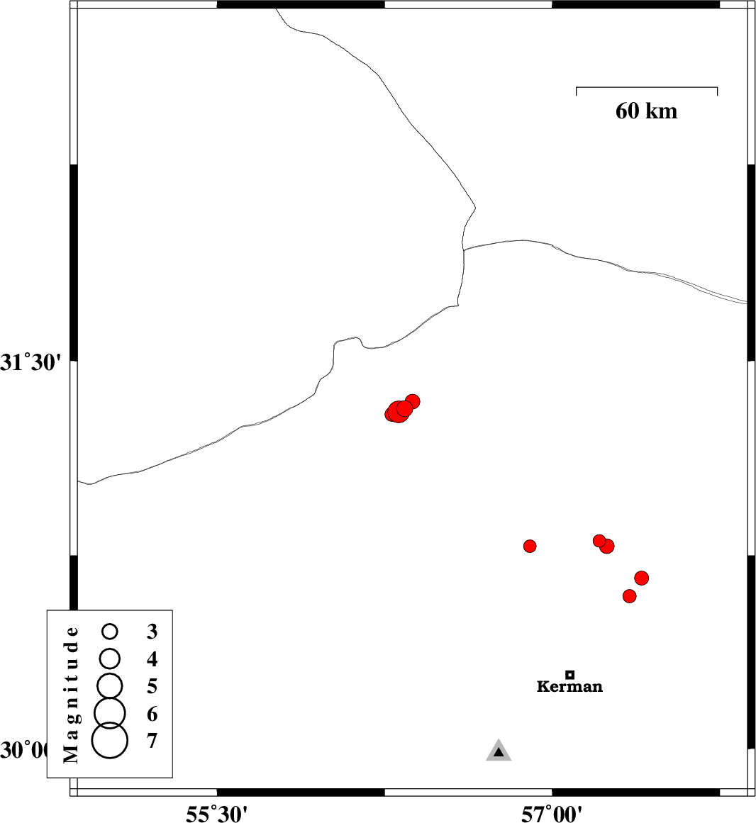 | 2018/04/19 | 05:45:23.9 | 10:15:23.9 | 30.786 | 57.244 | 14 | ML2.9 | Kerman Province, 58 km North-East of Kerman | ||