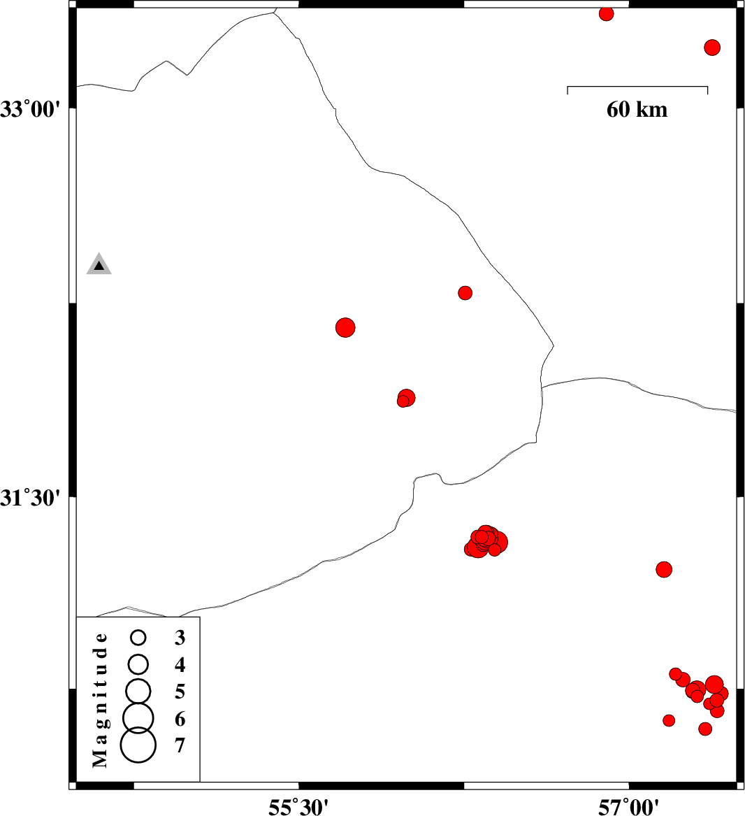 | 2018/04/26 | 08:33:01.3 | 13:03:01.3 | 31.361 | 56.346 | 14 | ML3 | Kerman Province, 46 km -West of Ravar | ||