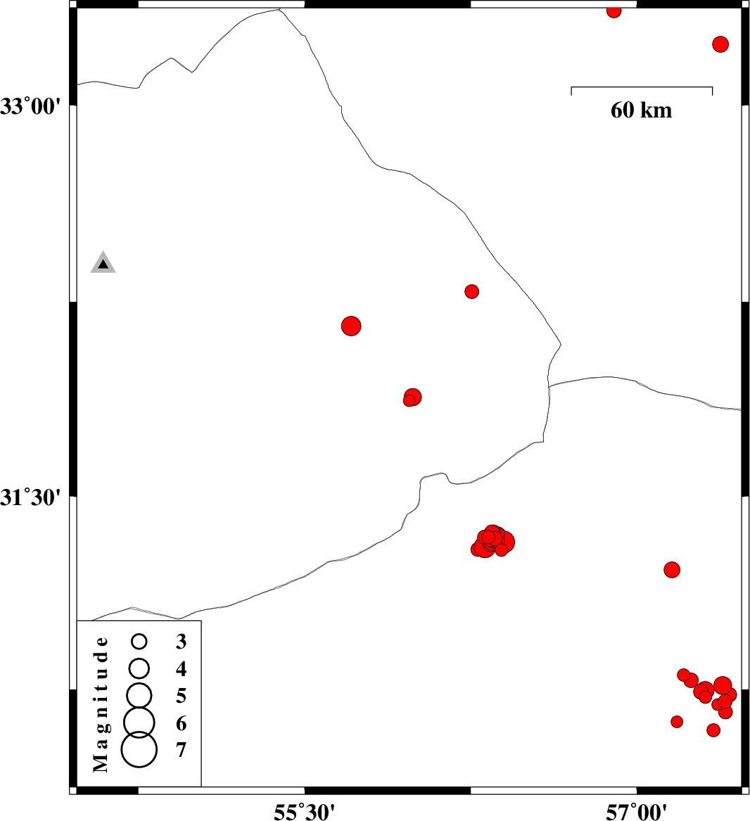 | 2018/04/26 | 08:33:01.3 | 13:03:01.3 | 31.361 | 56.346 | 14 | ML3 | Kerman Province, 46 km -West of Ravar | ||