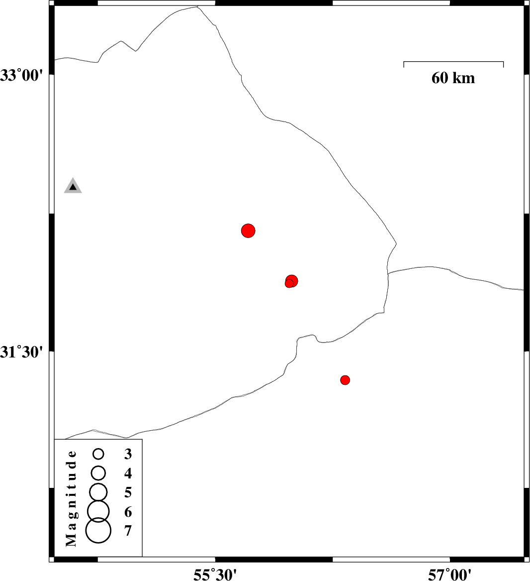 2018/05/15 00:55:20.9 05:25:20.9 31.8755.97214 ML2.4 Yazd Province, 62 km North-East of Bafq