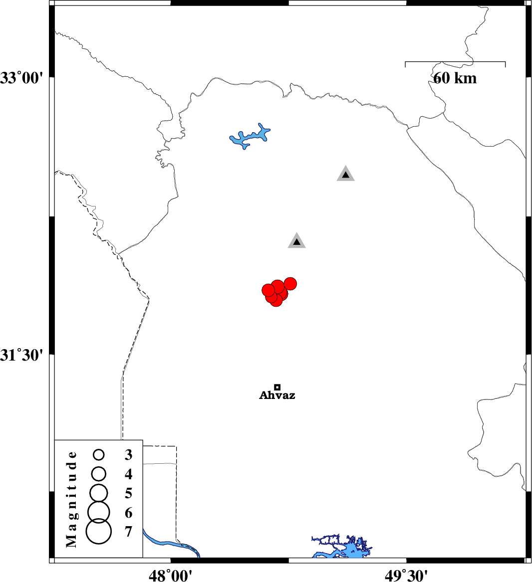 | 2018/03/27 | 23:07:52.4 | 03:37:52.4 | 31.831 | 48.7 | 14 | ML4.1 | Khoozestan Province, 28 km South-West of Shushtar |