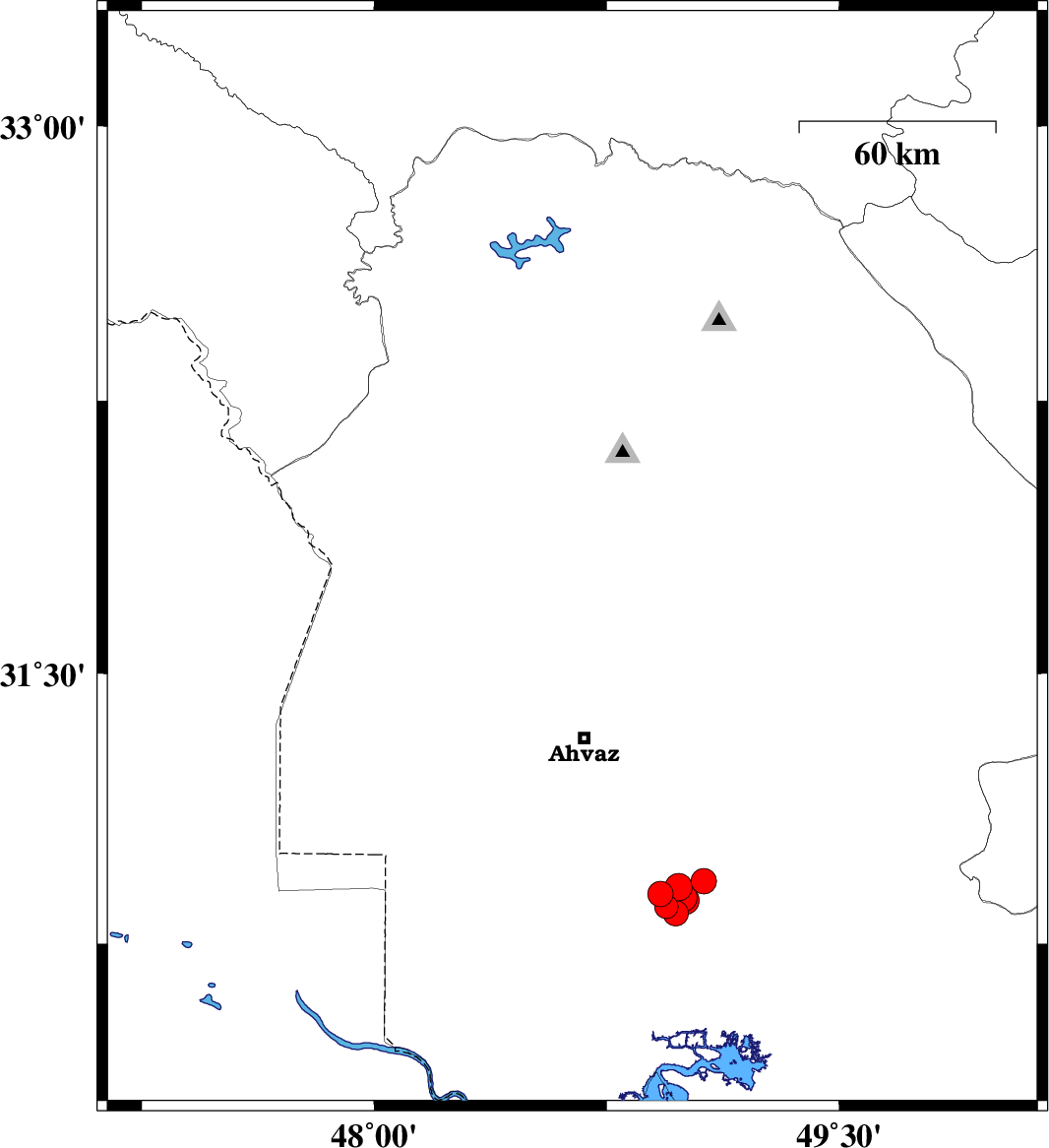 | 2018/03/28 | 11:59:42.9 | 16:29:42.9 | 31.795 | 48.67 | 15 | ML3.7 | Khoozestan Province, 32 km South-West of Shushtar | ||