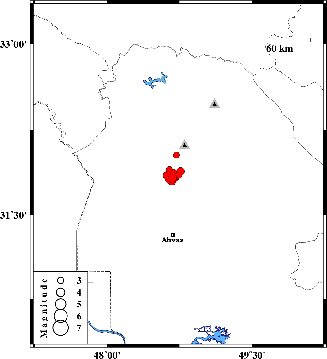 2018/03/27 23:07:52.4 03:37:52.4 31.83148.714 ML4.1 Khoozestan Province, 28 km South-West of Shushtar