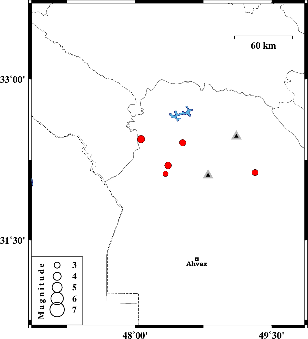 | 2018/05/17 | 00:03:45.4 | 04:33:45.4 | 32.445 | 48.065 | 15 | ML3.6 | Khoozestan Province, 27 km -West of Andimeshk |