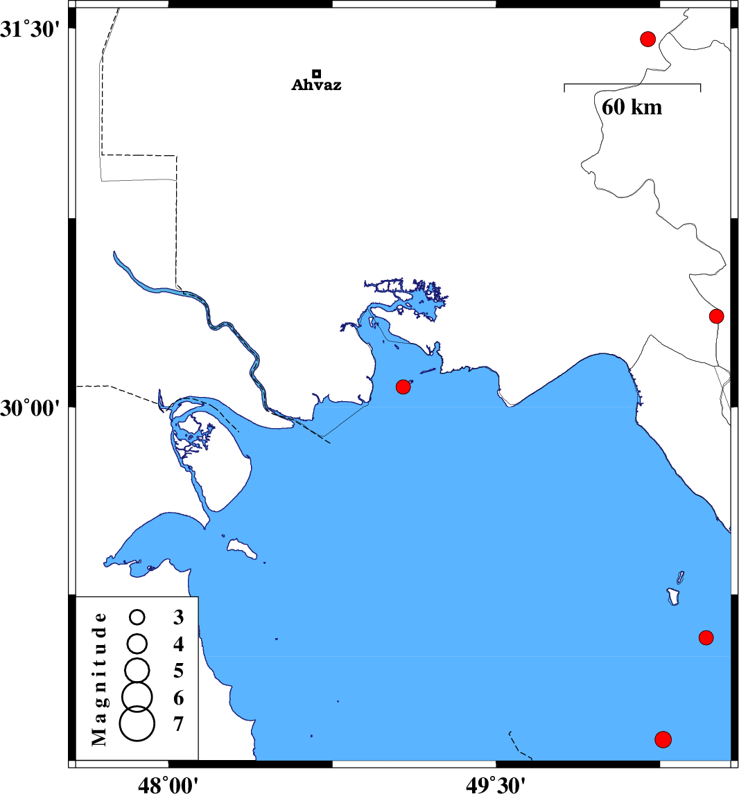 2018/05/05 | 23:16:51.1 | 03:46:51.1 | 29.076 | 50.462 | 15 | ML3 | Persian Gulf, 38 km -West of Busheher | ||