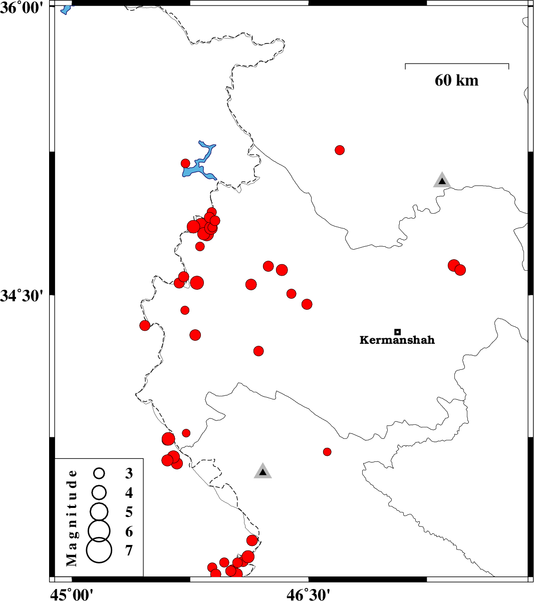 | 2018/05/09 | 16:34:05.2 | 21:04:05.2 | 34.907 | 45.872 | 15 | ML3 | Kermanshah Province, 16 km North of Tazehabad | ||