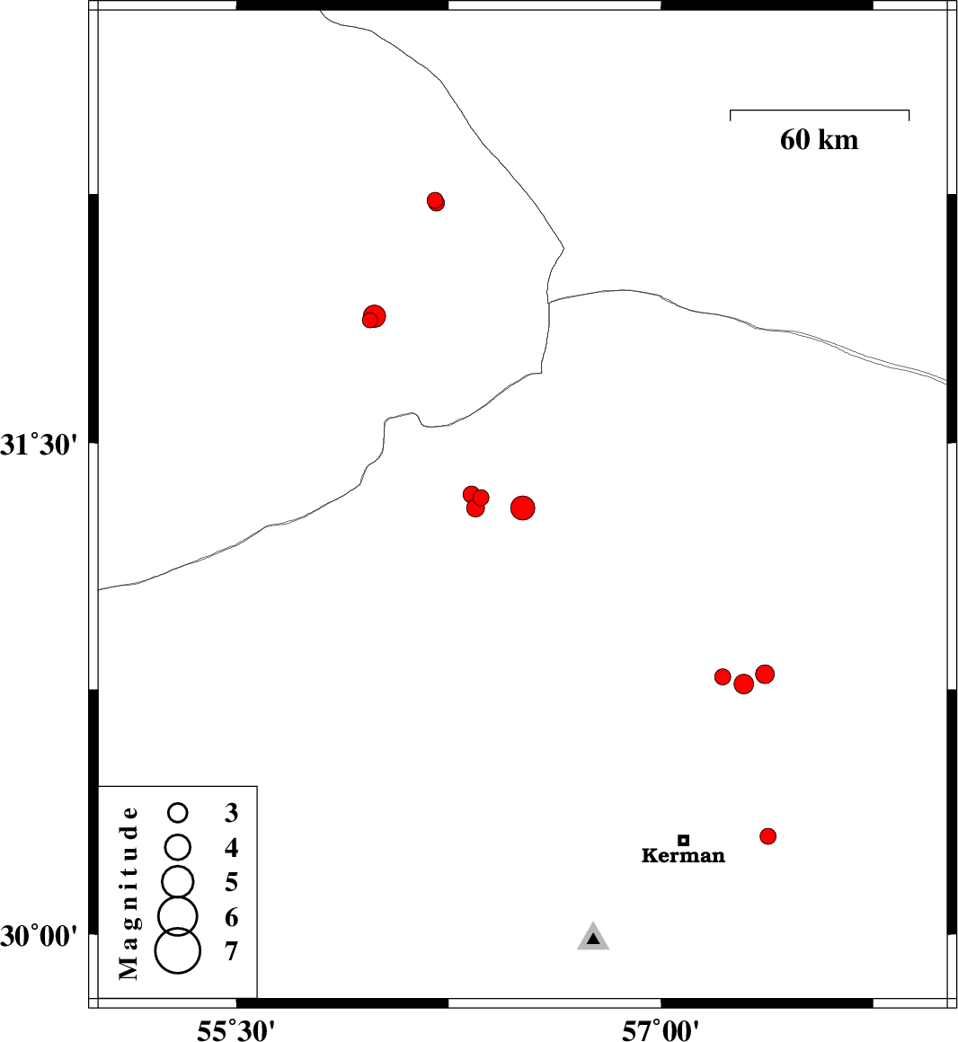 | 2018/05/17 | 10:18:29.6 | 14:48:29.6 | 30.796 | 57.367 | 15 | ML2.9 | Kerman Province, 63 km North-East of Kerman | ||