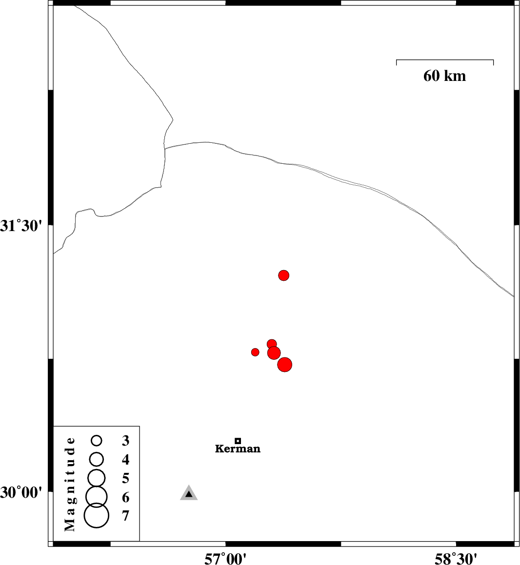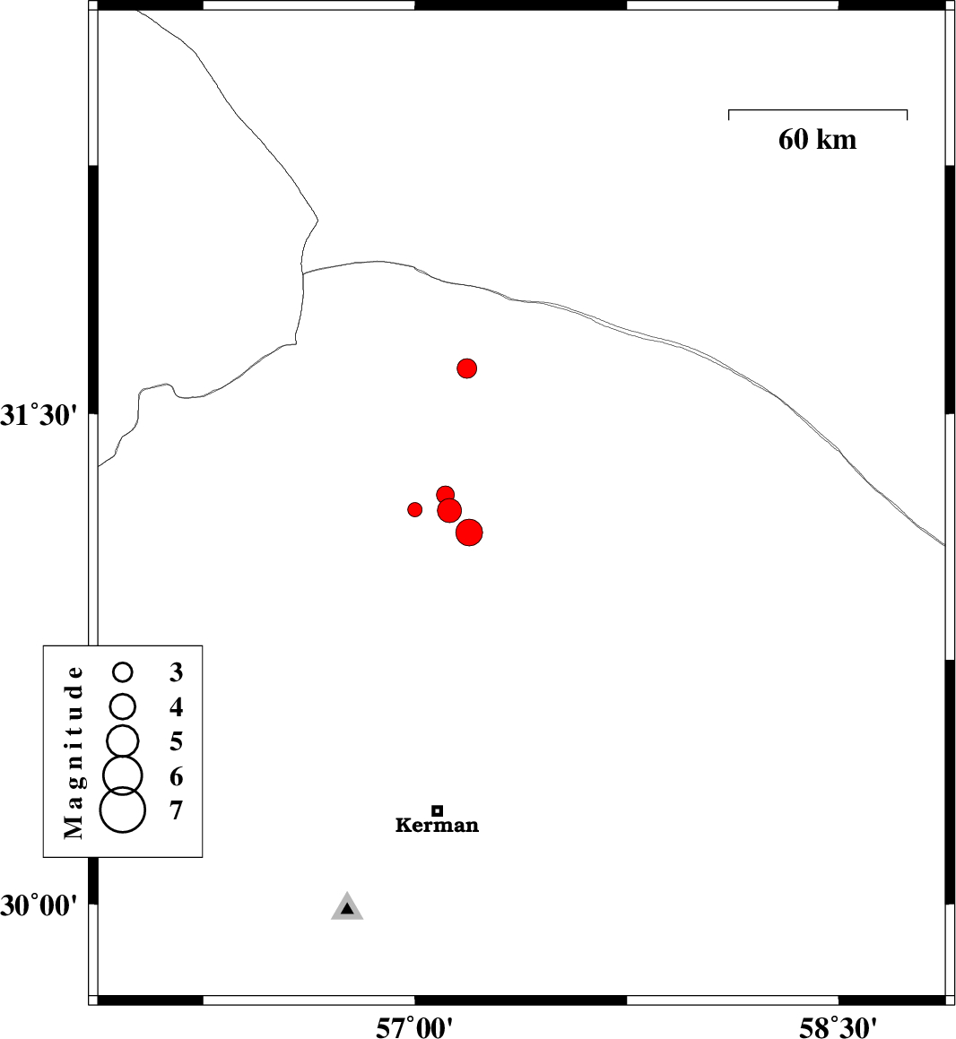 | 2018/03/30 | 12:45:14.3 | 17:15:14.3 | 30.717 | 57.384 | 15 | ML4.2 | Kerman Province, 56 km North-East of Kerman | ||