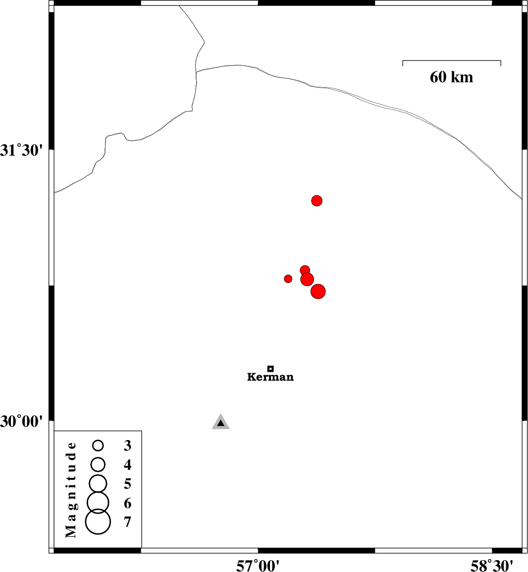 | 2018/03/30 | 12:45:14.3 | 17:15:14.3 | 30.717 | 57.384 | 15 | ML4.2 | Kerman Province, 56 km North-East of Kerman | ||
