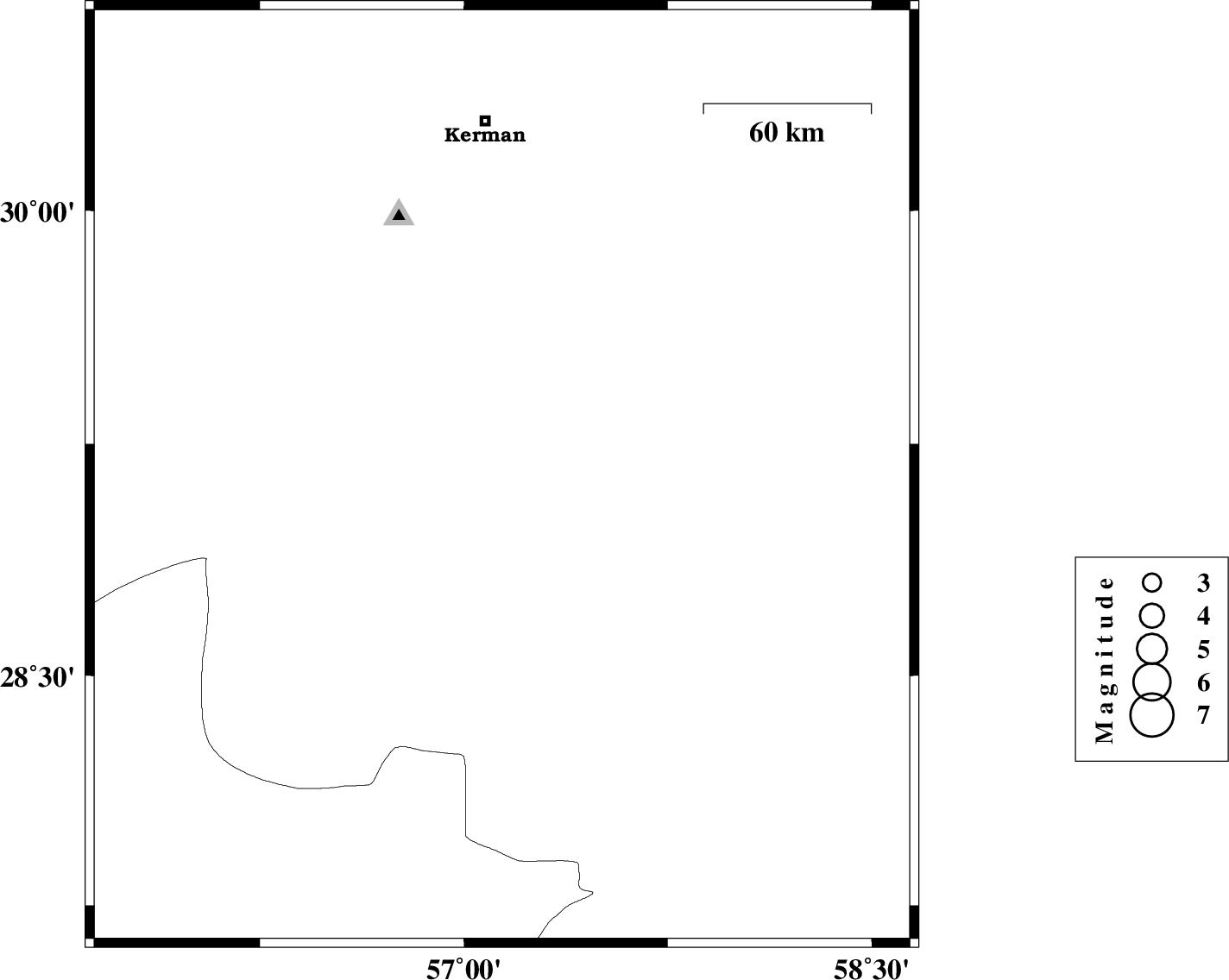 | 2018/03/26 | 03:21:01.8 | 07:51:01.8 | 29.074 | 58.393 | 14 | ML3.4 | Kerman Province, 5 km of Bam | ||