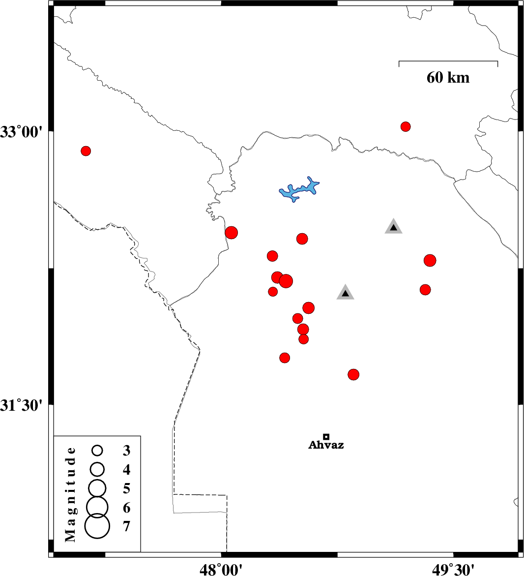 | 2018/05/19 | 09:57:24.8 | 14:27:24.8 | 32.318 | 48.33 | 15 | ML3.1 | Khoozestan Province, 9 km of Dezful | ||