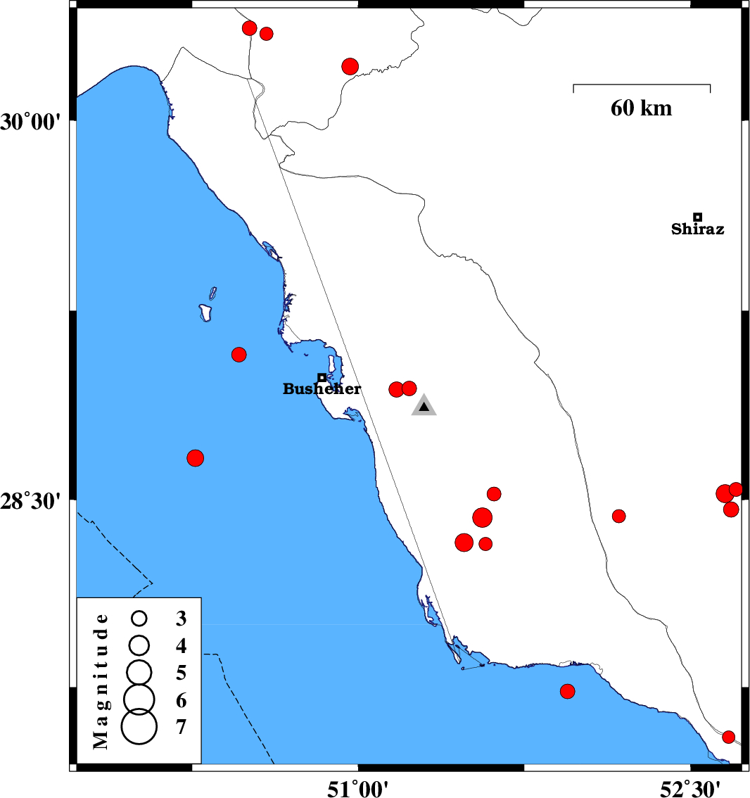 | 2018/05/20 | 17:17:09.7 | 21:47:09.7 | 28.941 | 51.23 | 17 | ML3 | Bushehr Province, 8 km of Ahram | ||
