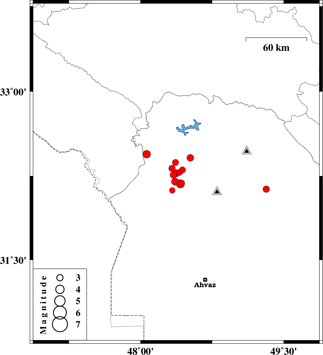 | 2018/05/21 | 05:44:57.1 | 10:14:57.1 | 32.275 | 48.374 | 15 | ML3.4 | Khoozestan Province, 12 km South of Dezful | ||