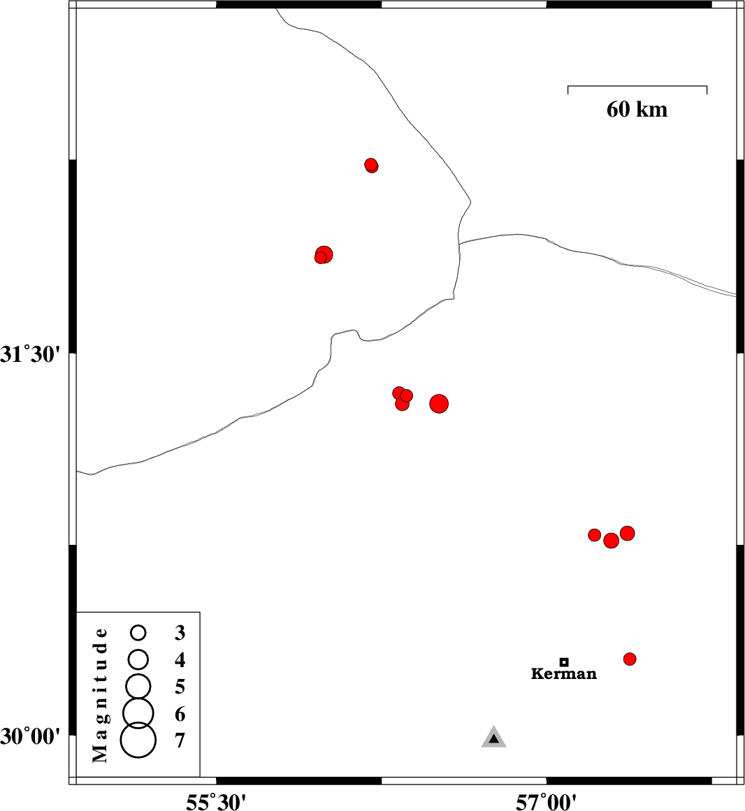 | 2018/05/17 | 10:18:29.6 | 14:48:29.6 | 30.796 | 57.367 | 15 | ML2.9 | Kerman Province, 63 km North-East of Kerman | ||