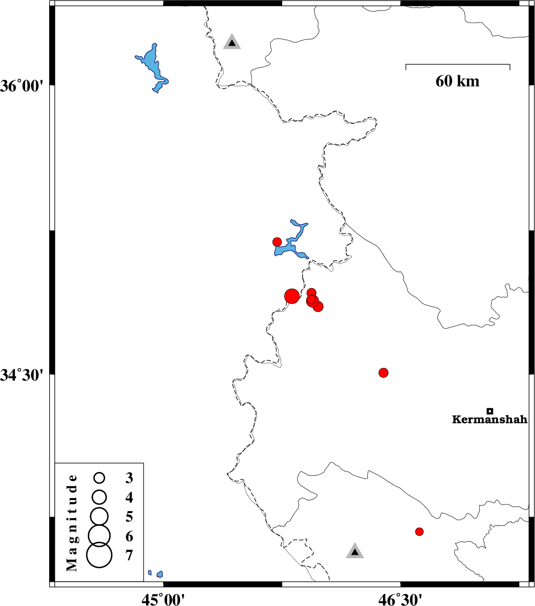 | 2018/05/22 | 00:36:00.5 | 05:06:00.5 | 34.882 | 45.943 | 15 | ML3.5 | Kermanshah Province, 17 km North-East of Tazehabad | ||