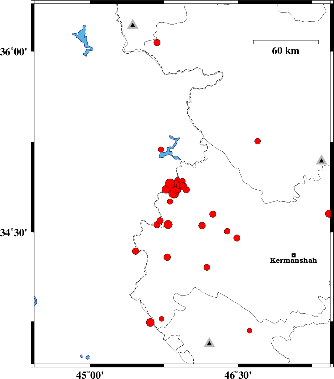 | 2018/05/09 | 16:34:05.2 | 21:04:05.2 | 34.907 | 45.872 | 15 | ML3 | Kermanshah Province, 16 km North of Tazehabad | ||