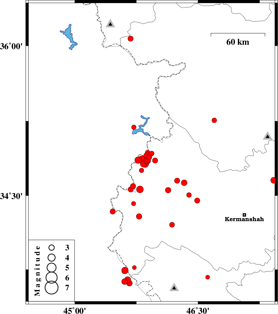 | 2018/05/09 | 16:34:05.2 | 21:04:05.2 | 34.907 | 45.872 | 15 | ML3 | Kermanshah Province, 16 km North of Tazehabad | ||
