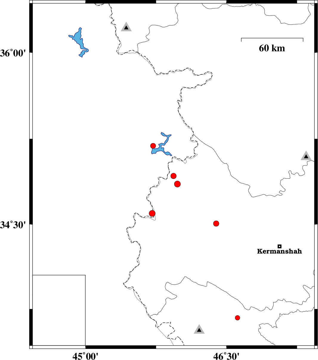 2018/05/19 | 17:15:46.7 | 21:45:46.7 | 34.507 | 46.391 | 14 | ML:2.7 | Kermanshah Province, 36 km South of Javanrud | ||