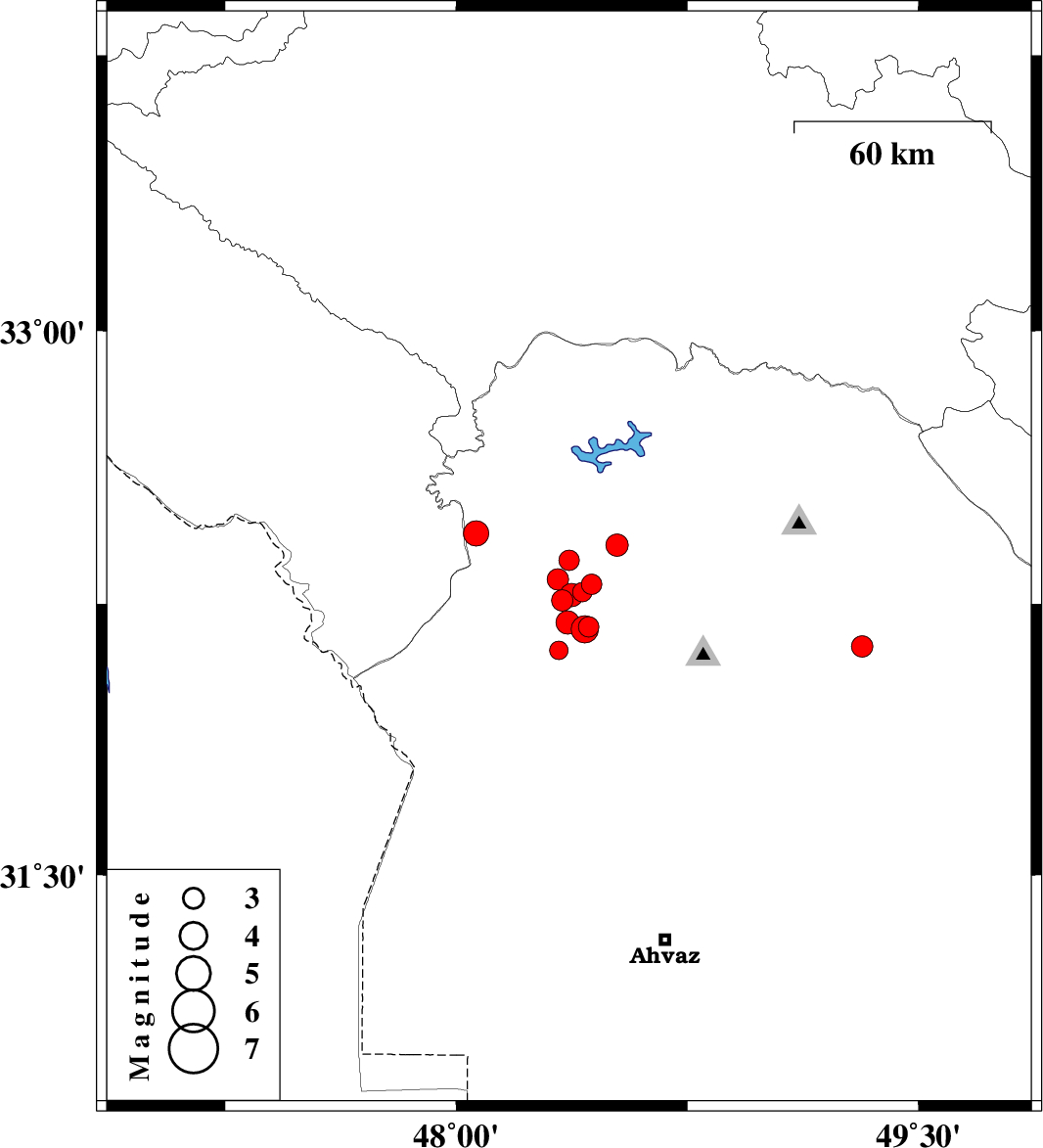 | 2018/05/21 | 05:44:57.1 | 10:14:57.1 | 32.275 | 48.374 | 15 | ML3.4 | Khoozestan Province, 12 km South of Dezful | ||