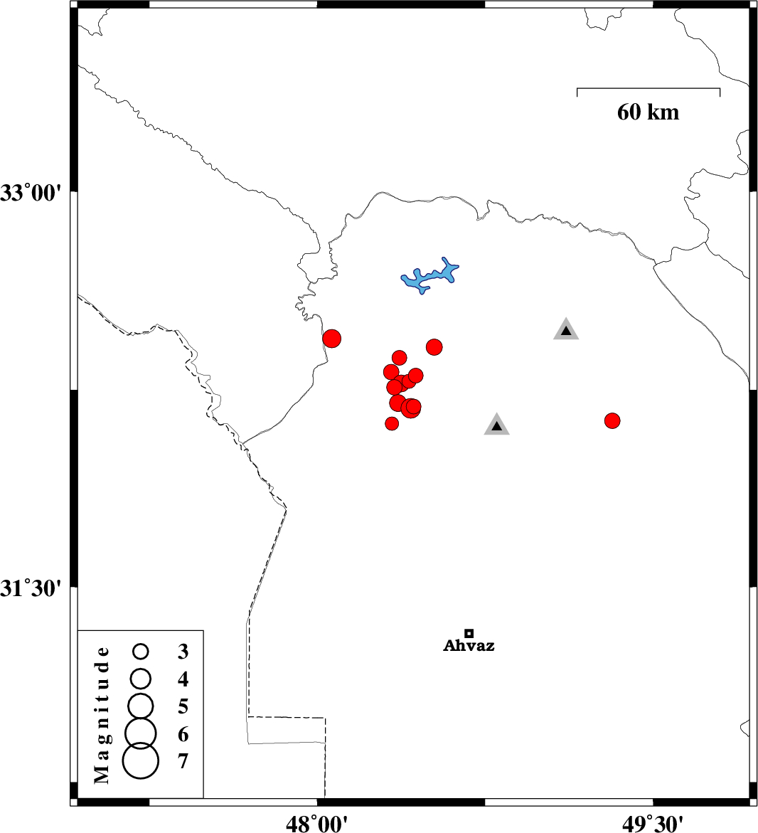 | 2018/05/21 | 05:44:57.1 | 10:14:57.1 | 32.275 | 48.374 | 15 | ML3.4 | Khoozestan Province, 12 km South of Dezful | ||