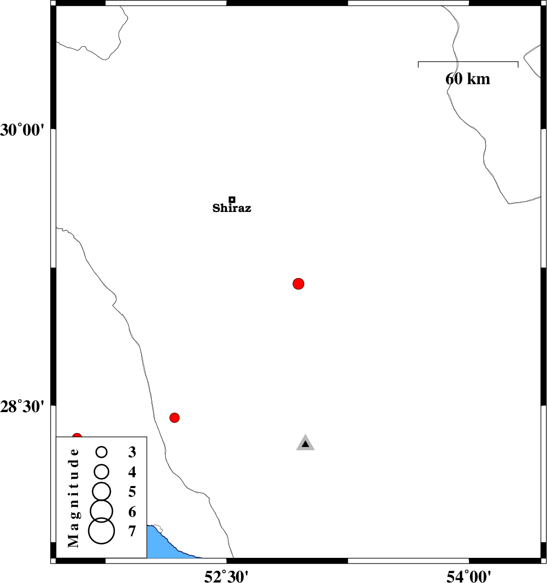 | 2018/05/16 | 15:10:09.3 | 19:40:09.3 | 28.433 | 52.177 | 6 | ML2.7 | Fars Province, 50 km South of Farashband |
