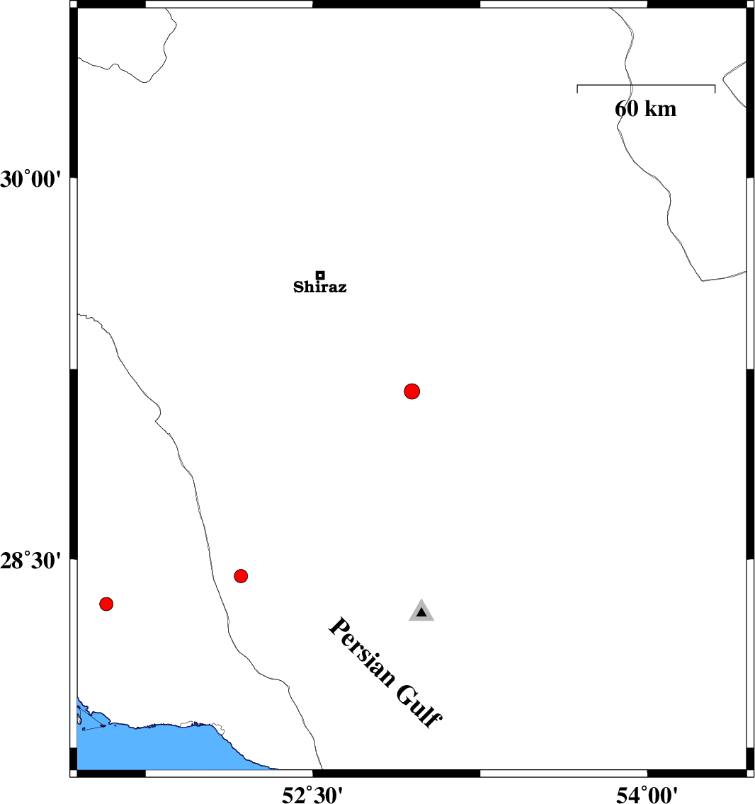 2018/05/16 | 15:10:09.3 | 19:40:09.3 | 28.433 | 52.177 | 6 | ML:2.7 | Fars Province, 50 km South of Farashband |