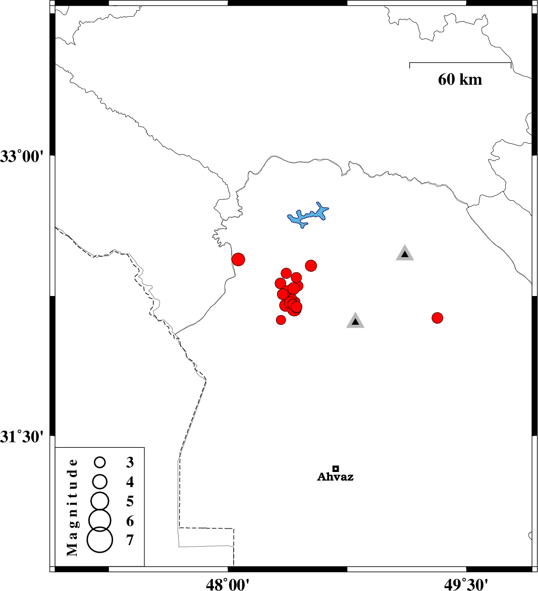 | 2018/05/21 | 05:44:57.1 | 10:14:57.1 | 32.275 | 48.374 | 15 | ML3.4 | Khoozestan Province, 12 km South of Dezful | ||