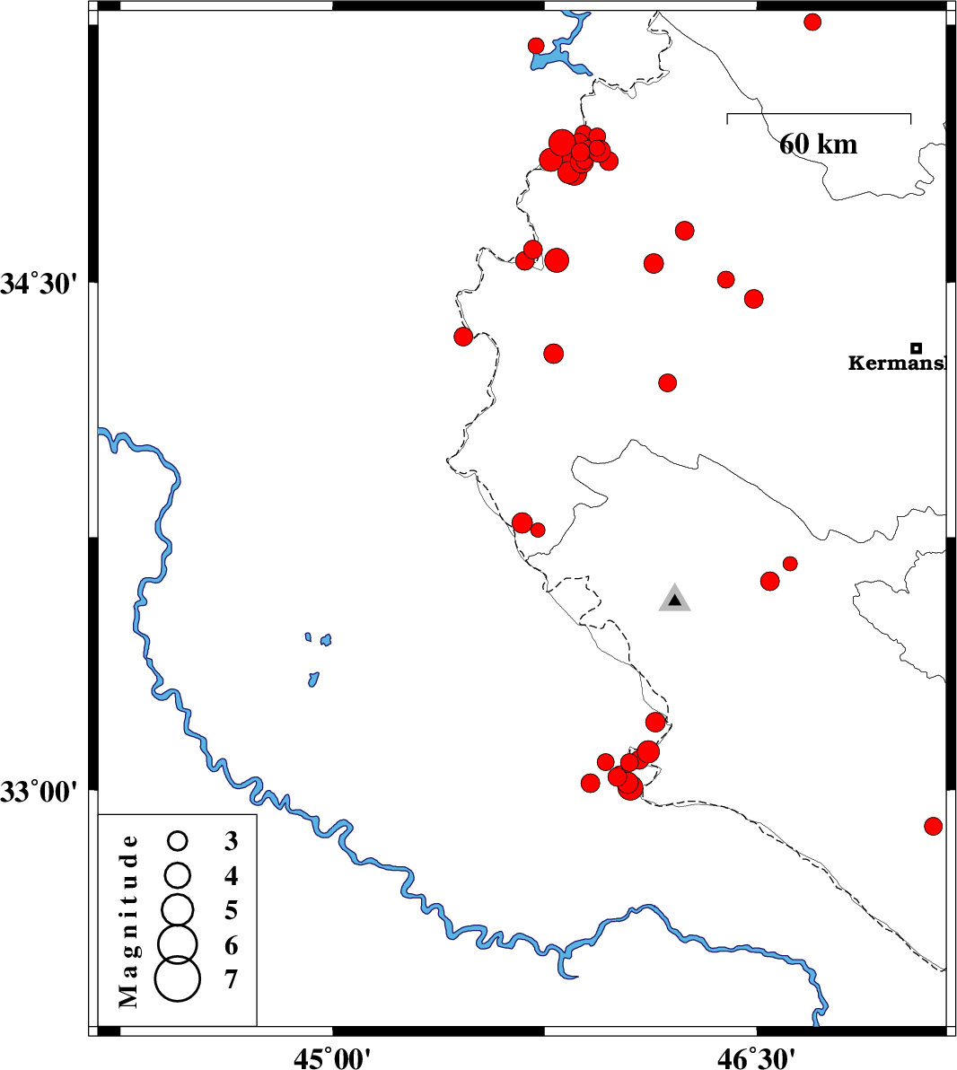 | 2018/05/09 | 16:34:05.2 | 21:04:05.2 | 34.907 | 45.872 | 15 | ML3 | Kermanshah Province, 16 km North of Tazehabad | ||