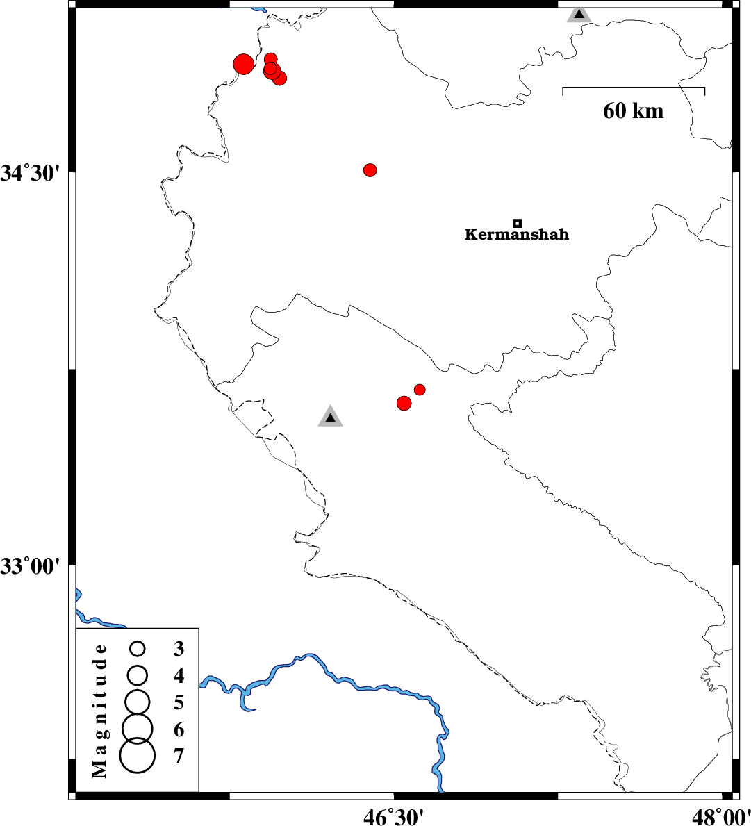 | 2018/05/22 | 00:36:00.5 | 05:06:00.5 | 34.882 | 45.943 | 15 | ML3.5 | Kermanshah Province, 17 km North-East of Tazehabad | ||